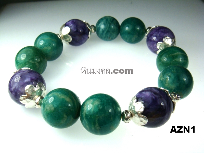 สร้อยข้อมือ อะมาโซไนต์+ชารอยต์ ประดับเงินแท้ #AZN1